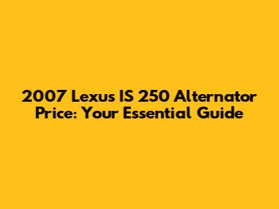 2007 Lexus IS 250 Alternator Price: What You Need To Know