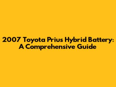 2007 Toyota Prius Hybrid Battery: A Comprehensive Guide