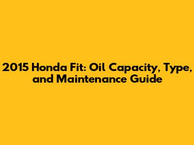 2015 Honda Fit: Oil Capacity, Type, And Maintenance Guide