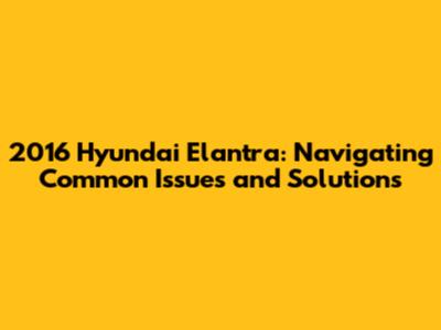 2016 Hyundai Elantra: Common Problems & Solutions