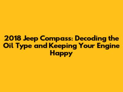 Hey guys! So, you've got a 2018 Jeep Compass, which is a pretty sweet ride. But like any car, keeping it running smoothly means understanding some basics. One of the most important things? Oil. Knowing the right oil type for your 2018 Jeep Compass is crucial for engine health and longevity. It's like giving your Compass the right kind of fuel for a long and happy life on the road. This guide will break down everything you need to know about the oil type, capacity, and some essential maintenance tips to keep your Jeep Compass humming.