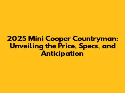 Hey everyone! Are you guys as excited as I am about the upcoming 2025 Mini Cooper Countryman? This little SUV has always been a favorite, blending classic Mini charm with a practical, slightly larger package. We're going to dive deep into what we know so far, focusing on the 2025 Mini Cooper Countryman price, its specs, and what kind of cool features we can expect. Let's get started!