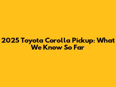 2025 Toyota Corolla Pickup: Release Date & What To Expect