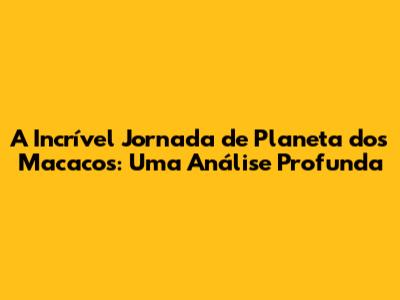 A Incrível Jornada De 'Planeta Dos Macacos' : Uma Análise Profunda