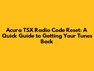 Acura TSX Radio Code Reset: Quick Guide