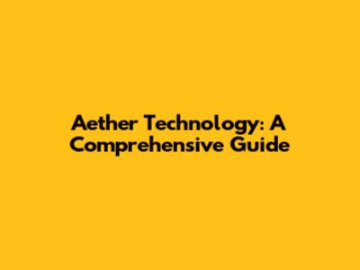 Aether Technology: A Comprehensive Guide