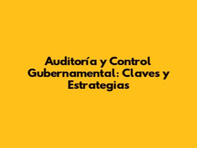 Auditoría Y Control Gubernamental: Claves Y Estrategias