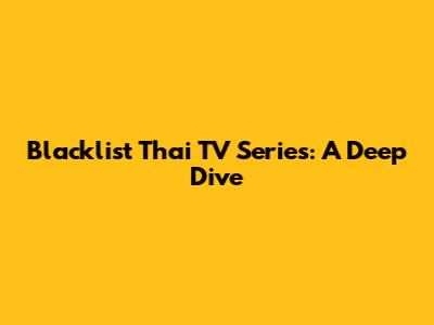 Blacklist Thai TV Series: A Deep Dive