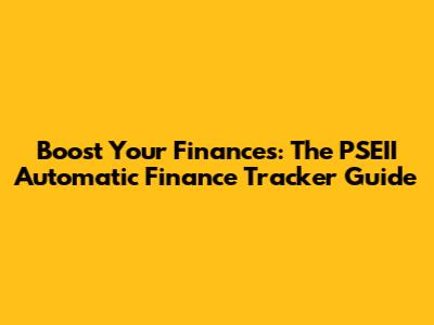 Boost Your Finances: The PSEII Automatic Finance Tracker Guide
