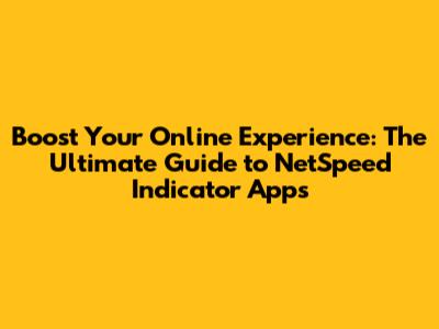 Boost Your Online Experience: The Ultimate Guide To NetSpeed Indicator Apps
