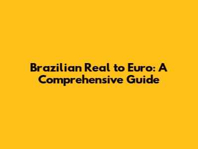 Brazilian Real To Euro: A Comprehensive Guide