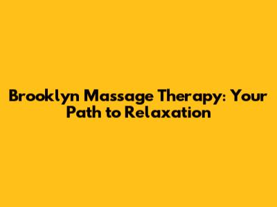 Brooklyn Massage Therapy: Your Path To Relaxation