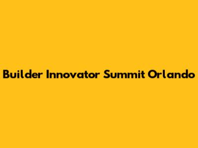 Builder Innovator Summit: Orlando's Premier Event