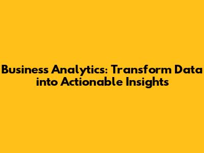 Business Analytics: Transform Data Into Actionable Insights