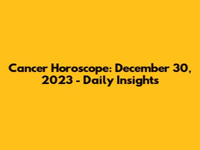 Cancer Horoscope: December 30, 2023 - Daily Insights