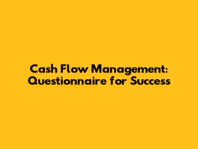 Cash Flow Management: Questionnaire For Success