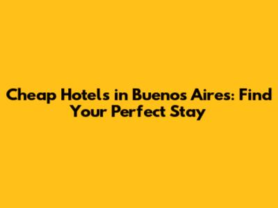 Cheap Hotels In Buenos Aires: Find Your Perfect Stay