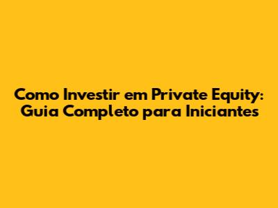Como Investir Em Private Equity: Guia Completo Para Iniciantes
