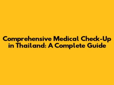 Comprehensive Medical Check-Up In Thailand: A Complete Guide