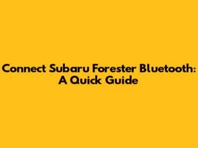 Connect Subaru Forester Bluetooth: A Quick Guide