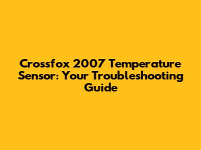 Crossfox 2007 Temperature Sensor: Troubleshooting & Replacement