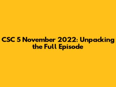Hey guys! Let's dive deep into the CSC 5 November 2022 full episode. I know, I know, sometimes it feels like a lifetime ago, but trust me, there's still gold to be mined from that episode. We're going to break down the key takeaways, the most memorable moments, and maybe even uncover a few hidden gems you might have missed the first time around. Get ready for a trip down memory lane, a refresher on the important stuff, and some fresh perspectives on everything that went down. Buckle up, buttercups; it's going to be a fun ride!