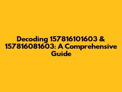 Decoding 157816101603 & 157816081603: A Comprehensive Guide
