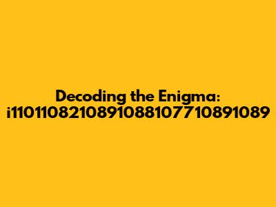 Decoding I1101108210891088107710891089: A Comprehensive Guide