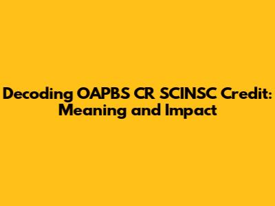 Decoding OAPBS CR SCINSC Credit: Meaning And Impact