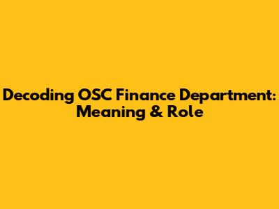 Decoding OSC Finance Department: Meaning & Role