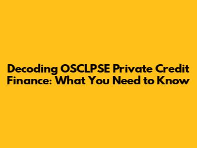 Decoding OSCLPSE Private Credit Finance: What You Need To Know