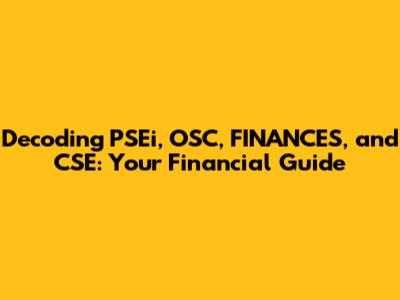 Hey there, finance enthusiasts! Let's dive into the exciting world of financial markets. Today, we're going to break down some key acronyms and concepts: PSEi, OSC, FINANCES, and CSE. Understanding these elements is crucial whether you're a seasoned investor, a budding entrepreneur, or just someone curious about how money works. So, buckle up, because we're about to embark on a journey that demystifies these financial terms and empowers you with the knowledge to navigate the markets. This guide is designed to be your go-to resource, providing clear explanations, practical examples, and actionable insights. Whether you're interested in stock trading, financial regulations, or the broader economic landscape, we've got you covered. Let's get started and make the complexities of finance a little less intimidating, shall we?