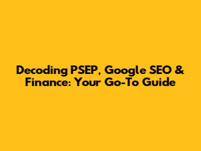 Hey guys! Let's dive deep into the world of PSEP, Google SEO, and finance! It sounds like a mouthful, but trust me, it's not as complicated as it seems. We're going to break down each piece, understand how they fit together, and explore how you can use this knowledge to your advantage. Whether you're a seasoned pro or just starting out, this guide is designed to help you navigate this exciting landscape. So, buckle up, because we're about to embark on a journey that will transform the way you think about SEO, finance, and everything in between!