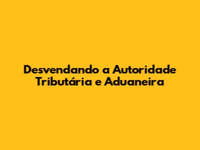 Desvendando A Autoridade Tributária E Aduaneira