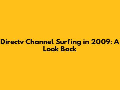 Directv Channel Surfing In 2009: A Look Back