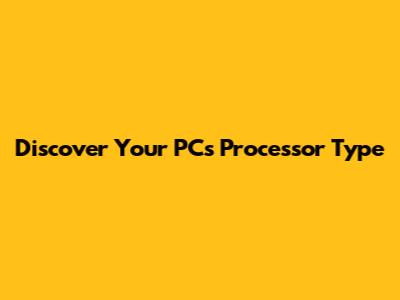 Discover Your PC's Processor Type