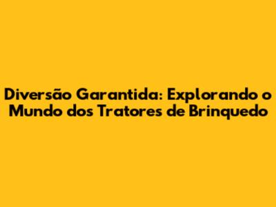 Por Que Tratores de Brinquedo São Incríveis?