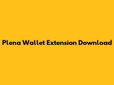 How to Download and Install Plena Wallet Extension