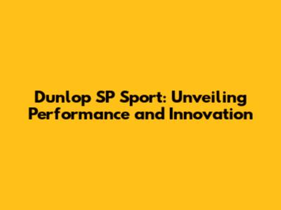 Dunlop SP Sport: Unveiling Performance And Innovation