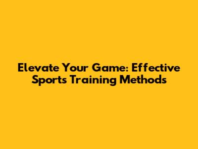 Elevate Your Game: Effective Sports Training Methods