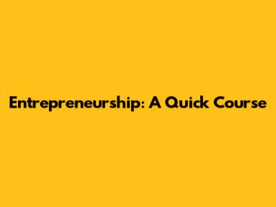 Entrepreneurship: A Quick Course