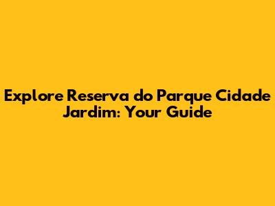 Explore Reserva Do Parque Cidade Jardim: Your Guide