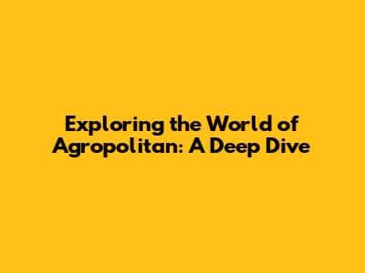 Exploring The World Of Agropolitan: A Deep Dive