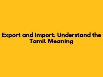 Export And Import: Understand The Tamil Meaning