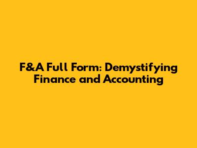 F&A Full Form: Demystifying Finance And Accounting