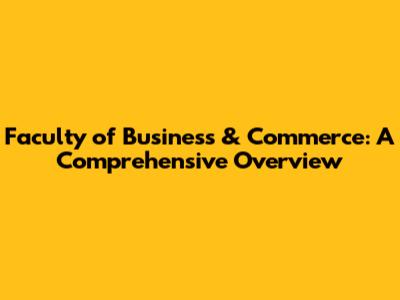 Faculty Of Business & Commerce: A Comprehensive Overview