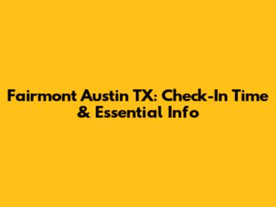 Fairmont Austin TX: Check-In Time & Essential Info