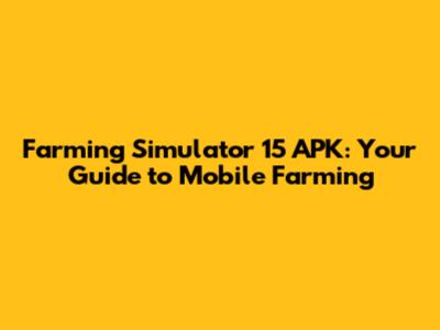 Farming Simulator 15 APK: Your Guide To Mobile Farming
