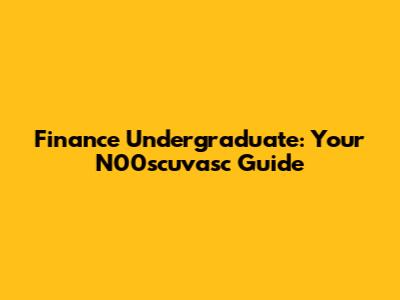 Finance Undergraduate: Your N00scuvasc Guide
