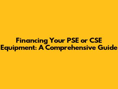 Financing Your PSE Or CSE Equipment: A Guide